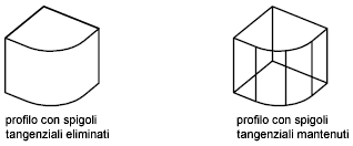 Determina se vengono visualizzati gli spigoli tangenziali. Per spigolo tangenziale si intende la linea di transizione tra due facce tangenti. Si tratta dello spigolo immaginario nel quale le due facce si incontrano e al quale sono tangenti. Ad esempio, se si raccorda lo spigolo di un parallelepipedo, gli spigoli tangenziali vengono creati nel punto in cui la faccia cilindrica del raccordo si fonde con le facce piane del parallelepipedo. Nella maggior parte delle applicazioni di disegno, gli spigoli tangenziali non vengono visualizzati.