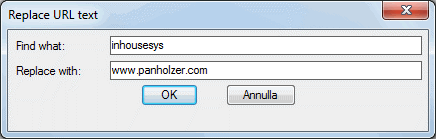 È possibile specificare un indirizzo URL completo o parziale. Ad esempio, effettuando un'unica operazione è possibile sostituire con il dominio .net tutti i riferimenti a collegamenti ipertestuali con dominio .com oppure sostituire un URL interno con un URL di un sito Web esterno.