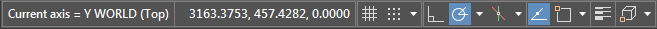 L'icona UCS con le linee d'asse di RTUCS e la riga di stato con le informazioni sull'asse corrente: