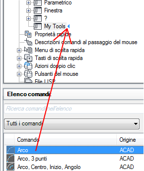 Nel riquadro Elenco comandi, trascinare un comando nel menu a discesa o in una posizione al di sotto del menu a discesa nel riquadro Personalizzazioni in <nome file>.