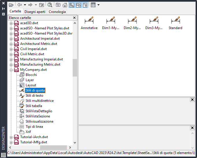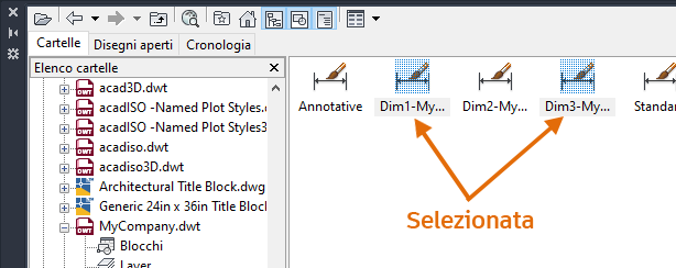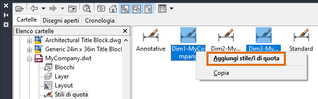 Gli stili di quota vengono aggiunti al disegno corrente.
