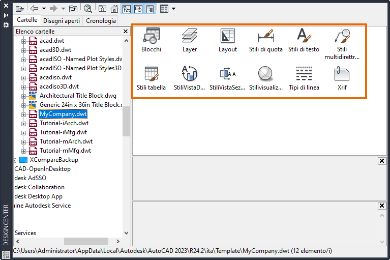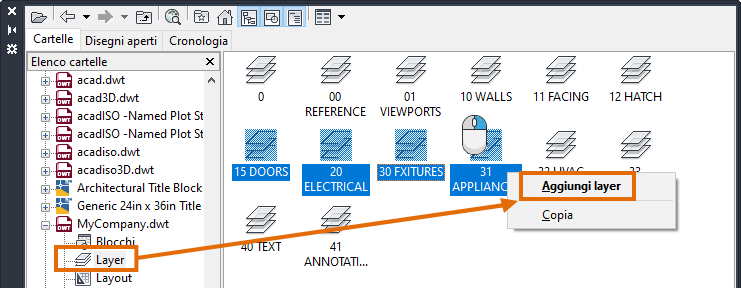 Tutti gli stili e i layer del modello sono ora disponibili nel disegno corrente. Gli stili e i layer esistenti con lo stesso nome non vengono modificati.