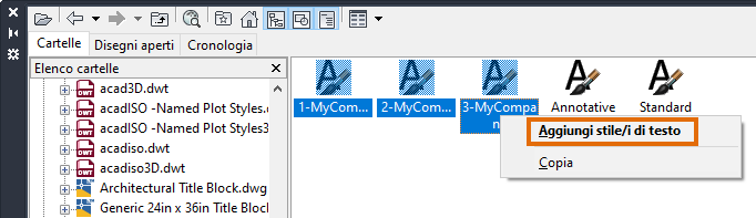 Ripetere l'operazione per eventuali altri stili che si desidera importare nel disegno corrente.