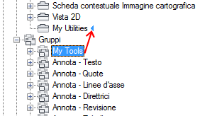 Utilizzare l'indicatore visivo per specificare la posizione del gruppo della barra multifunzione nella scheda della barra multifunzione.