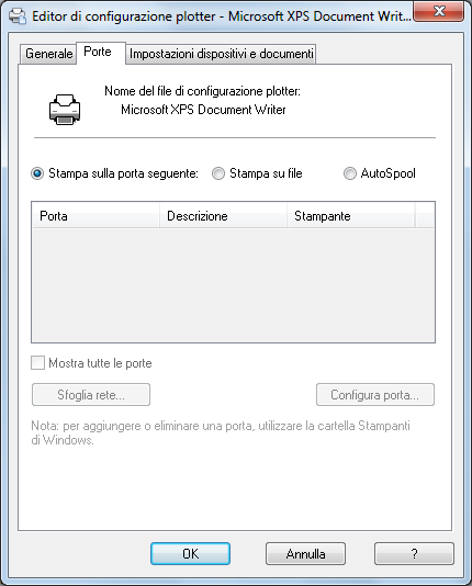 Visualizza le porte disponibili sulla rete, per consentire la connessione ad un'altra istanza di un plotter non di sistema.