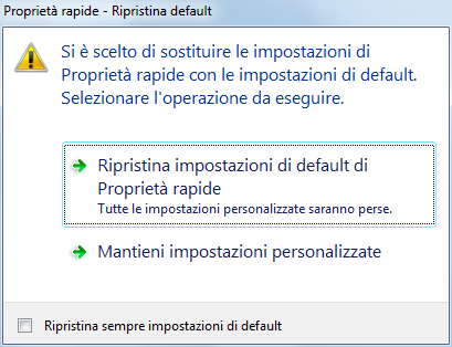 - Fare clic su Ripristina le impostazioni di default di Proprietà rapide.