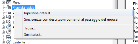 - Nella scheda Personalizza, nel riquadro Personalizzazioni in <nome file>, fare clic con il pulsante destro del mouse su Proprietà rapide.