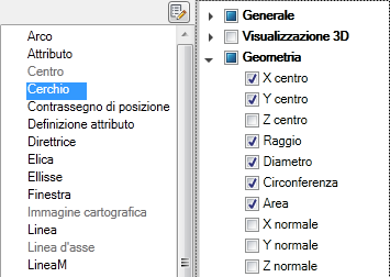 - Nel riquadro Proprietà, fare clic sulle caselle di controllo accanto alle proprietà generali che si desidera visualizzare nella tavolozza Proprietà rapide per tutti i tipi di oggetto.