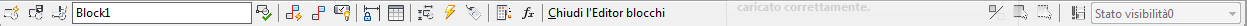 La barra degli strumenti Editor blocchi viene visualizzata quando la barra multifunzione non è attiva. Inoltre viene visualizzata solo quando si accede all'Editor blocchi con la barra multifunzione chiusa.