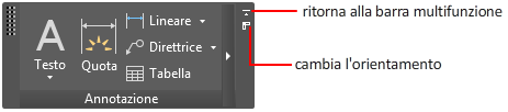 Quando si seleziona un particolare tipo di oggetto o si avviano determinati comandi, viene visualizzata una scheda contestuale della barra multifunzione anziché una barra degli strumenti o una finestra di dialogo. La scheda contestuale viene chiusa al termine del comando.