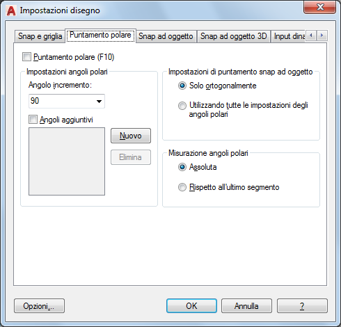 Limita il movimento del cursore agli angoli polari specificati. (Variabile di sistema AUTOSNAP)