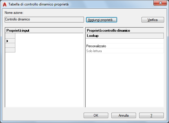 Crea e modifica di una tabella di controllo dinamico per le proprietà personalizzate nella definizione di blocco dinamico.