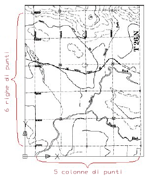 Questa finestra consente di impostare i parametri per la griglia di punti di destinazione. I dati per specificare tali parametri possono essere letti dalle informazioni nell'immagine.
