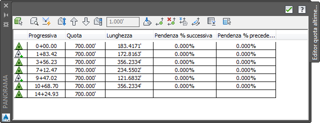 Figura 1: Editor quote altimetriche con due punti di divisione