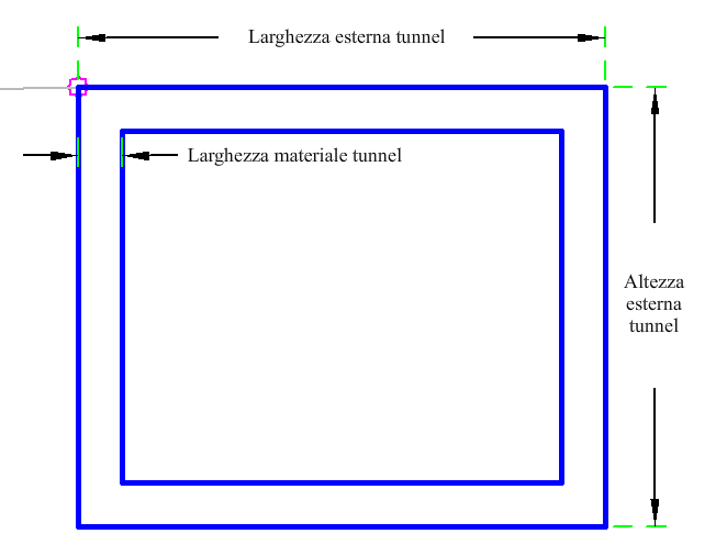 | Larghezza esterna del tunnel | Larghezza della parte esterna del tunnel. | Numerico, positivo |