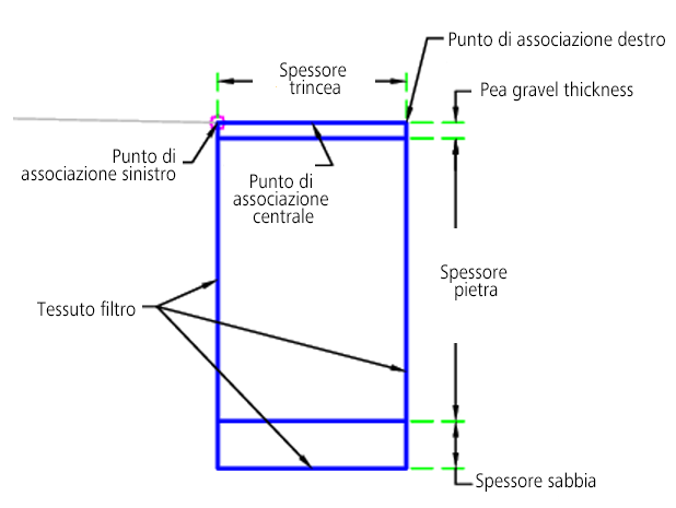 | L2 | Ghiaia fina, Tessuto filtro | Strato di ghiaia fine; se il parametro Includere tessuto filtro è impostato su Sì, viene incluso il tessuto filtro |