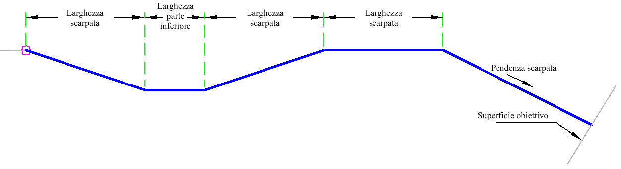 Anche la pendenza della banchina è predefinita e il collegamento creato si estende fino a quando non trova una superficie obiettivo.