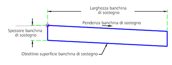 | Superficie banchina di sostegno | Nome della superficie scarpata. Come obiettivi per la specifica della superficie è possibile utilizzare i seguenti tipi di oggetti: superfici. | Facoltativo |