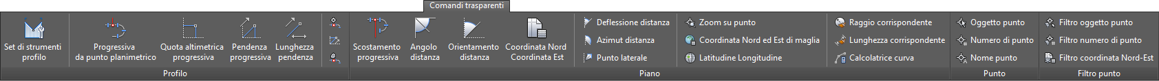 È possibile eseguire i comandi trasparenti dalla scheda della barra multifunzione Comandi trasparenti, dal menu contestuale, utilizzando una barra degli strumenti o immettendo un comando.