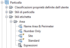 Per ciascun tipo di etichetta è disponibile uno stile Standard. Anche i modelli di Carta di Autodesk Civil 3D contengono diversi altri stili etichetta che è possibile utilizzare.