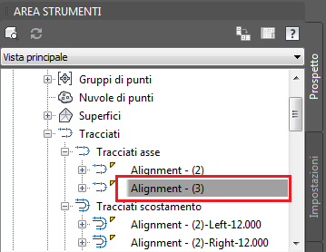 raccolta Tracciati di riferimento della struttura Prospetto. Utilizzare questo comando per trovare rapidamente il percorso di un tracciato di intersezione nella struttura Prospetto.