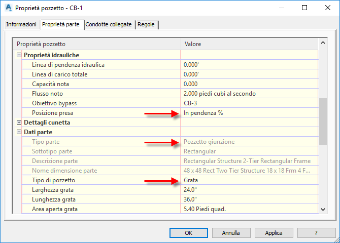 Per ulteriori informazioni, vedere Assegnazione dei parametri di pozzetto di drenaggio per l'analisi della rete a gravità.