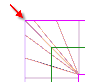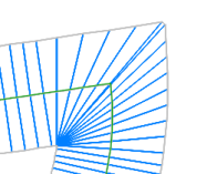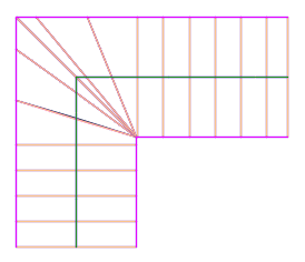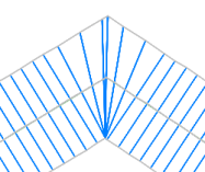 Il punto in cui si incontrano gli angoli interni viene calcolato e le linee radiali vengono estese da tale posizione, utilizzando la frequenza di inserimento lungo la linea base, come definito nella finestra di dialogo Frequenza di applicazione sezioni tipo.
