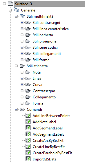 Gli oggetti Condotte e Superficie possono condividere gli stili Render nella raccolta Stili multifinalità generale, mentre Modellatori e Scarpata condividono gli altri stili nella cartella.