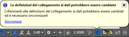 Quando i riferimenti diventano obsoleti rispetto ai collegamenti ai dati, viene visualizzato un messaggio che richiede di sincronizzare i riferimenti. Fare clic su Sincronizza per aggiornare i riferimenti.
