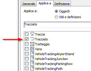 Per la maggior parte dei tipi di etichetta, nella scheda Applica a della finestra Gestione stili, selezionare il tipo di oggetto a cui si desidera applicare un'etichetta, invece del tipo di etichetta dell'oggetto correlato (per eccezioni, vedere il paragrafo seguente). Ad esempio, per etichettare i tracciati con dati di proprietà, selezionare Tracciato quando si configura il gruppo di proprietà.