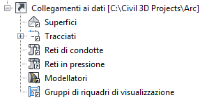 È possibile utilizzare i collegamenti ai dati per superfici, tracciati, profili, gruppi linee di sezione, modellatori, reti di condotte, reti in pressione e gruppi di riquadri di visualizzazione.