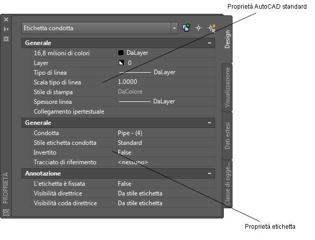 Modifica delle proprietà di AutoCAD per un'etichetta condotta