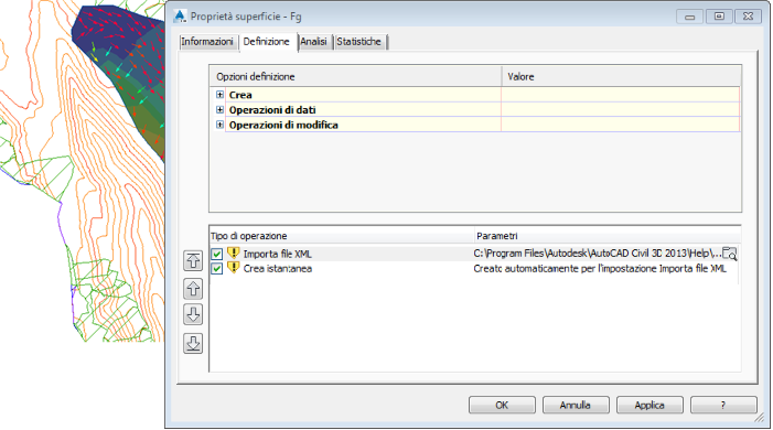 Editor delle proprietà in cui sono illustrate le proprietà della superficie