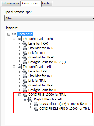 | Pendenza % layout | 4.000:1 | Specifica la pendenza % della linea disegnata per rappresentare questo componente sezione tipo in modalità layout. Questo parametro, insieme al parametro Larghezza layout, consente di posizionare il componente sezione tipo Sterro o riporto condizionale e i componenti sezione tipo ad esso associati. Non viene tuttavia visualizzato né influisce sul tipo modellatore. |