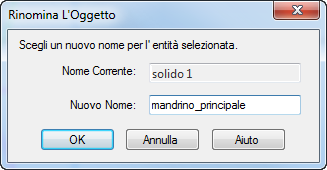 Quando si apre un file Machine design in FeatureCAM, i solidi potrebbero non avere nomi descrittivi. Non si devono rinominare tutti i solidi, ma è utile rinominare i componenti della macchina con i loro nomi descrittivi standard (per esempio main_spindle) o in base al loro movimento desiderato (per esempio x_slide). Questo rende più semplice il processo di creazione e rende più semplice ad altri modificare il documento più tardi.