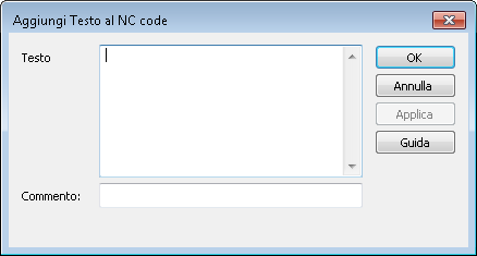 Per visualizzare la finestra di dialogo Aggiungi testo al codice NC, fare clic su Aggiungi testo al codice NC
