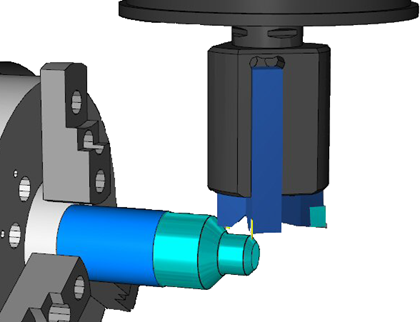 Si possono simulare le mini torrette, che sono utensili con inserti multipli in cui l'utensile ruota rispetto all'asse B per accedere a ciascun inserto. Gli utensili vengono simulati simultaneamente, il che permette di controllare eventuali tallonamenti con gli utensili che non sono al momento in uso.