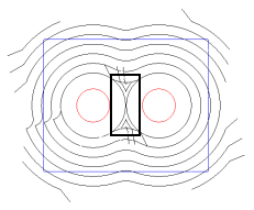 Si può impostare Spigolo percorso % su qualsiasi percentuale positiva. Impostarlo su una percentuale grande come 200% o 300% offre un alto grado di ammorbidimento del percorso utensile. In questo caso, in cui il raggio dell'utensile di taglio è significativamente minore del raggio dello spigolo, la percentuale dell'utensile che è a contatto con la parte, viene ridotta al minimo. Questo permette all'utensile di raffreddarsi e anche evitare aumenti improvvisi nel carico dell'utensile quando entra negli spigoli.