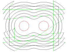 2. Impostare Spigolo percorso % su un valore alto (per esempio 200%) per la passata di sgrossatura iniziale. Questa passata copre la maggior parte della parte con percorsi utensile morbidi. Questa immagine mostra un esempio di percorsi utensile morbidi usando uno spigolo percorso %.