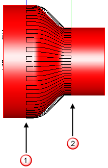 Crea un percorso utensile ruotando il lavoro intorno all'asse indicizzato. Questo è spesso l'asse Z in un documento di tornitura motorizzata e spesso l'asse X in un documento di fresatura. La fresatura di rotazione crea percorsi utensile che tagliano superfici senza bisogno di avvolgimento. In un documento di tornitura motorizzata, la feature deve avere l'opzione Taglia con utensile X selezionata nella scheda Asse utensile prima di poter creare un'operazione di rotazione. L'angolo dell'utensile X deve essere 0