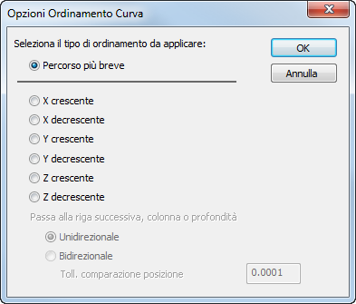 Per visualizzare la finestra di dialogo Opzioni ordinamento curva, nella finestra di dialogo Ordinamento o Selezionare le curve boundary, selezionare Ordinamento manuale e fare clic su Ordinamento.
