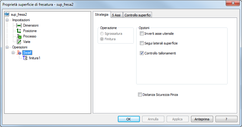 Controllo tallonamenti — Selezionare questa opzione per controllare eventuali tallonamenti del percorso utensile.
