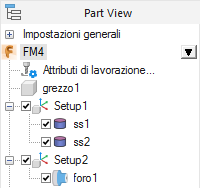 Le feature devono essere include nel setup adatto. I comandi del contromandrino possono essere posizionati all'estremità del setup principale o all'inizio del setup del contromandrino. Explorer, mostrato sotto, ha i comandi del contromandrino alla fine del primo setup.