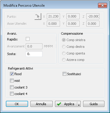 Per visualizzare la finestra di dialogo Modifica percorso utensile, selezionare un segmento del percorso utensile nella scheda Percorsi utensile della finestra di dialogo Proprietà feature fresatura e fare clic su Modifica segmento