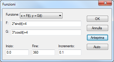 Nell'elenco Funzione selezionare x=F(t), y=G(t) che modella le funzioni parametriche.