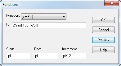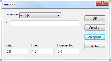 Nell'elenco Funzione selezionare il tipo di funzione che si vuole costruire. Usare y = F(x) per specificare y come funzione di x e x = F(y) per specificare x come funzione di y.