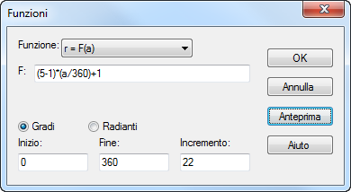 La funzione r = F(a) è utile per descrivere le funzioni polari in cui il raggio è calcolato come funzione dell'angolo finale o variabile dell'argomento.