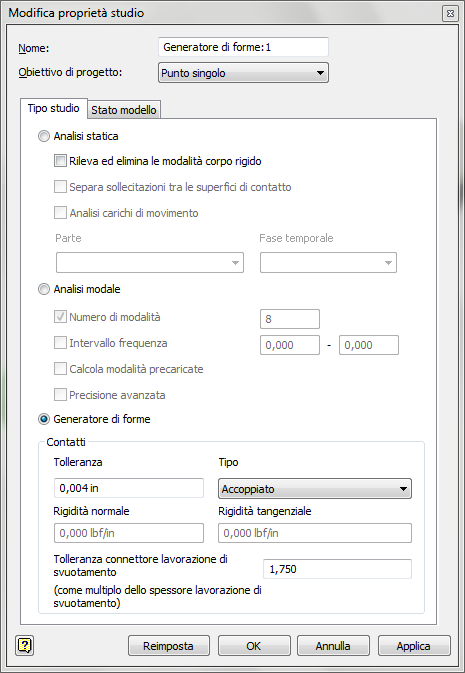 Per avviare uno studio Generatore di forme dall'interno dell'ambiente di Analisi sollecitazione:
