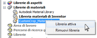 - Fare clic con il pulsante destro del mouse sul nodo Librerie di materiali e selezionare Aggiungi libreria.