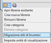 - Nella barra degli strumenti del browser, fare clic su Migrazione stili di Inventor.